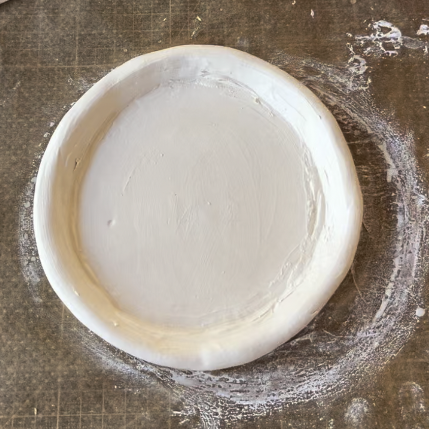 Nun fügen wir noch einen Rand um das Spielbrett herum hinzu. Rolle dafür etwas Ton zu einer Schlange und ritze den äußeren Rand deiner Platte leicht an. Feuchte mit etwas Wasser den geritzten Rand etwas an und lege die Rolle darauf. Nun kannst du mit Wasser, einem Schwamm und deinen Fingern die Übergänge verblenden. So entsteht ein sauberer, stabiler Rand.