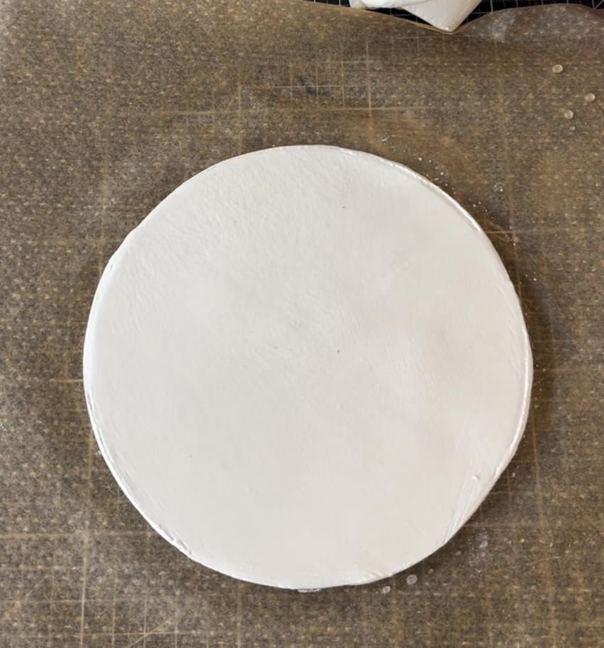 Roll den Ton auf der Unterlage gleichmäßig flach aus, jedoch nicht zu dünn. Etwa 0,5 cm dick, so ist das Board stabil, aber nicht zu schwer.